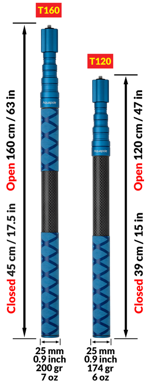 AQUAPOLE T160 & T120 carbon telescopic poles